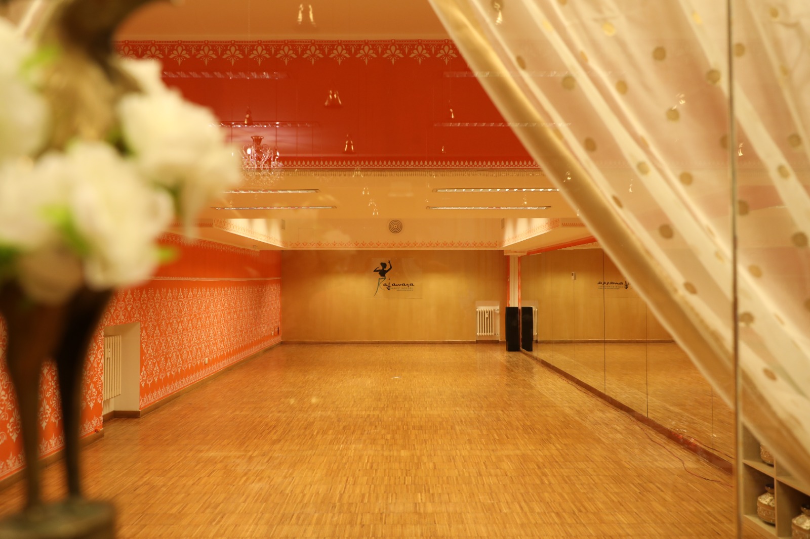 La sala di circa 90mq, è dotata di sbarre professionali, specchi, parquet, impianto stereo, climatizzatore, proiettore e schermo.